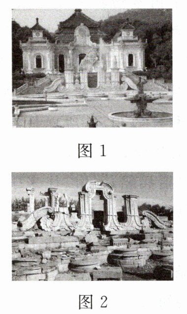 (2)被誉为“万园之园”的圆明园(图1)变为断壁残垣(图2),劫掠者是谁?