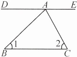 【解析】根据AB和AC被BC所截得出∠2,根据BC和AC被AB所截得出∠CAB,根据DE和BC被AB所截得出∠EAB,所以与∠1互为同旁内角的是∠2,∠CAB和∠EAB,共3个。