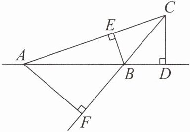 【例2】如图,CD⊥AD,BE⊥AC,AF⊥CF,CD= 2cm,BE= 1.5cm,AF= 4cm,则点A到直线BC的距离是