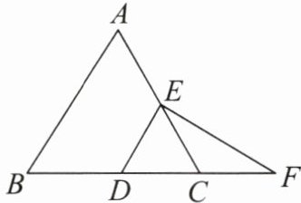 【例3】如图,在等边$\triangle ABC$中,点$D在边BC$上,过点$D作DE // AB交AC于点E$,过点$E作EF \perp DE$,交$BC的延长线于点F$。