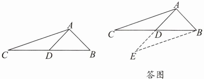 证明:如答图,延长$AD$至点$E$,使$DE = AD$,连接$BE$。