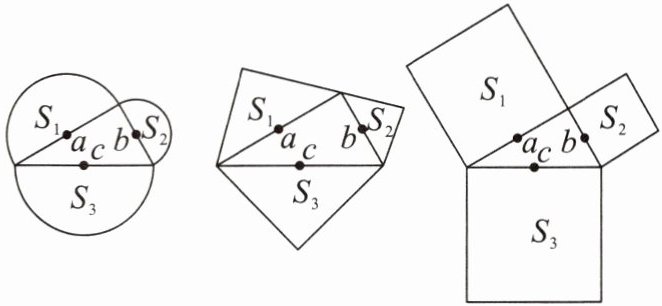 8. 如图,以直角三角形三边$a$,$b$,$c$为边,向外作半圆、等腰直角三角形和正方形,上述三种情况的面积关系满足$S_{1}+S_{2}= S_{3}$的图形个数有(