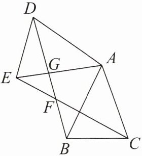 23. 如图,在$\triangle ABC$中,$AB= AC$,把$\triangle ABC绕点A沿顺时针方向旋转得到\triangle ADE$,连接$BD交CE于点F$,交$AE于点G$.