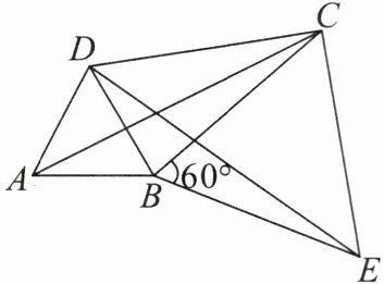 (2)如图,将$\triangle ABC绕顶点B按顺时针方向旋转60^{\circ}得到\triangle DBE$,连接$AD$,$DC$,$CE$,已知$\angle DCB= 30^{\circ}$.