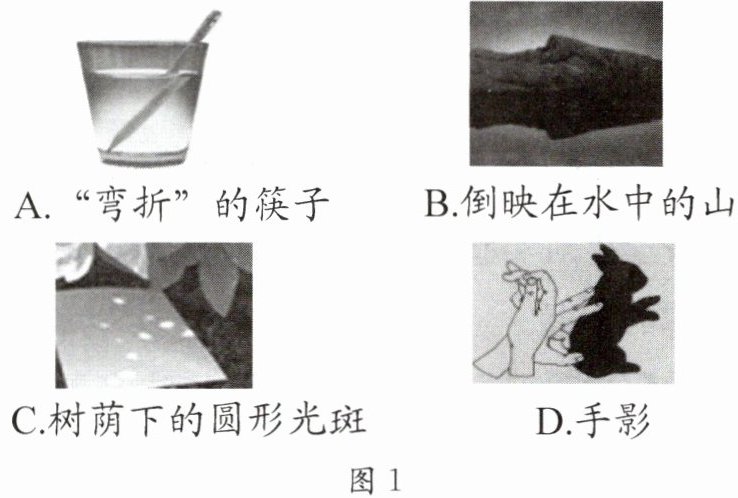 1. 如图1所示,下列四种情境中,与平面镜成像原理相同的是(