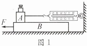 8. 在探究“影响滑动摩擦力大小的因素”的实验时,将木块A放置在水平木板B上,加一个钩码,将弹簧测力计系在A上,如图1所示,当向左拉动B时,下列说法错误的是(