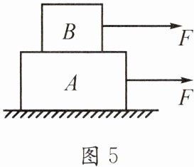 18. 如图5,物体A重10N,B重15N. 两个相同的力F= 7N,同时作用在A、B两个物体上,使它们在水平平面上一起做匀速直线运动. 则A、B间的摩擦力为