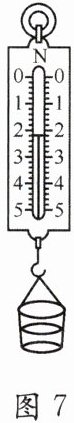 (1)①用测力计测出空杯子重力$0.2N$;②将杯子里装满水,用测力计测出总重,如图7所示;③将杯子里装满雪的样品,用弹簧测力计测出总重为$1N$,雪的样品密度是______