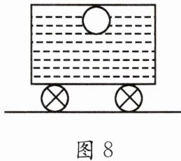 10. 洒水车车厢内装满水,水面上方有一气泡,如图8所示,当洒水车向左突然减速运动时,气泡将向