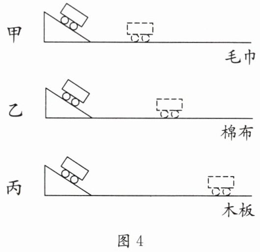 7. (内江)为探究“力与运动的关系”,设计了如图4所示的斜面实验,让小车从斜面滑到接触面分别为毛巾、棉布和木板的水平面上,观察小车在水平面上滑行的距离.