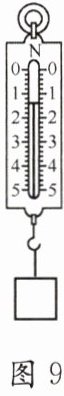 21. 图 9 中所示的弹簧秤测量范围是