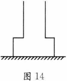 20. 如图 14 是一个上下两端开口的容器 (忽略容器壁厚度), 重 $4.2 \mathrm{~N}$, 放在光滑的水平桌面上, 容器底部与桌面接触良好. 容器下部是底面积为 $S_{1}= 100 \mathrm{~cm}^{2}$ 、高为 $h_{1}= 5 \mathrm{~cm}$ 的圆柱体, 上部是底面积为 $S_{2}= $ $25 \mathrm{~cm}^{2}$ 、高为 $h_{2}= 10 \mathrm{~cm}$ 的圆柱体. 从容器上端缓慢注人水, 直到容器与桌面之间无压力时, 水才从容器底部流出. (忽略大气压的影响, $g$ 取 $10 \mathrm{~N} / \mathrm{kg}$ ) 求: