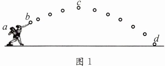 如图1所示是一名运动员投掷铅球的过程示意图.铅球在$b$点离手,$c$点是铅球运动的最高点,不计空气阻力.在$a到d$的整个过程中,下列说法正确的是(