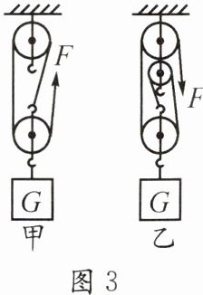 (2)小红在小明实验的基础上多使用一个滑轮也做了实验,如图3乙所示。