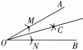 ②分别以点______为圆心, ______的长为半径画弧. 两弧在$\angle AOB的内部相交于点C$.