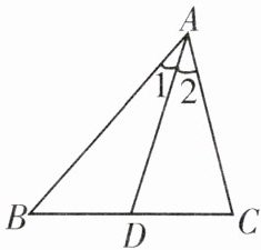(2) 性质: 如图, 若$AD是\triangle ABC$的角平分线, 则有$\angle 1= $______$=$______.