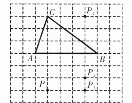 13. 如图,在方格纸中,以$AB为一边作\triangle ABP$,使之与$\triangle ABC$全等,从$P_1$,$P_2$,$P_3$,$P_4四个点中找出符合条件的点P$,则点$P$有(