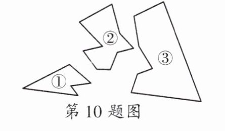10. 如图,小明把一块三角形的玻璃打碎成了三块,现在要到玻璃店去配一块完全一样的玻璃,那么最省事的办法是(