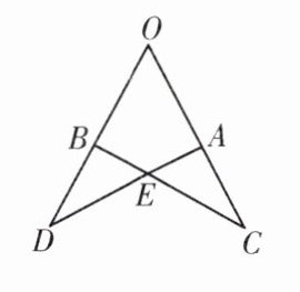 11. 如图,$OA= OB$,$OC= OD$,$\angle O= 50^{\circ}$,$\angle D= 35^{\circ}$,则$\angle AEC$等于(