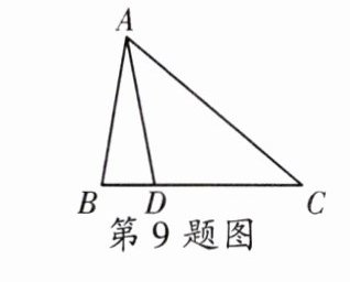 9. 如图,在$\triangle ABC$中,点$D在BC$上,$AB= AD= DC$,$\angle B= 80^{\circ}$,则$\angle C$的度数为(