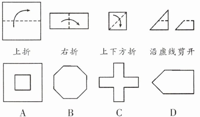 11. 如图,把一个正方形三次对折后沿虚线剪下,则所得图形大致是(