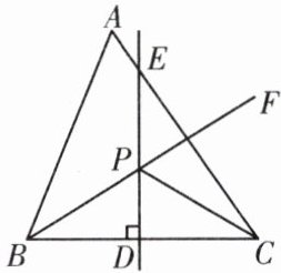 10. 如图,在$\triangle ABC$中,$\angle A = 60^{\circ}$,点$D是BC$边的中点,$DE\perp BC$,$\angle ABC的角平分线BF交DE于\triangle ABC内一点P$,连接$PC$。