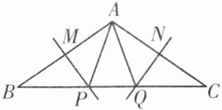 9. 如图,$\angle BAC = 110^{\circ}$,若$MP和NQ分别垂直平分AB和AC$,则$\angle PAQ$的度数是