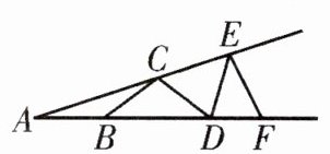 14. 如图,$∠EAF= 15^{\circ },AB= BC= CD= DE= EF$,则$∠DEF$等于(