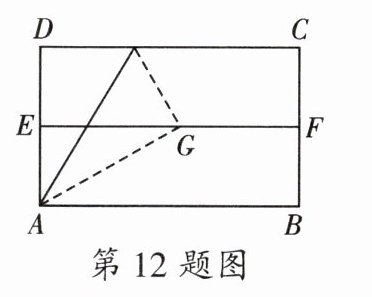 12. (南充中考)如图,对折矩形纸片ABCD,使AB与DC重合得到折痕EF,将纸片展平;再一次折叠,使点D落到EF上的点G处,并使折痕经过点A,展平纸片后$∠DAG$的大小为(