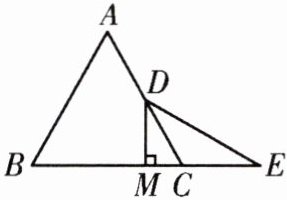 方法二:连$BD$,可求得$\angle DBC=\angle E = 30^{\circ}$,则$BD = ED$,又$DM\perp BC,\therefore M$是$BE$的中点.