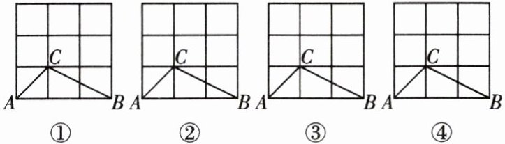 17. (6分)在$3×3$的正方形格点图中,有格点$\triangle ABC和\triangle DEF$,且$\triangle ABC和\triangle DEF$关于某直线成轴对称,请在如图给出的图中画出4个这样的$\triangle DEF$.(每个$3×3$正方形个点图中限画一种,若两个图形中的对称轴是平行的,则视为一种)