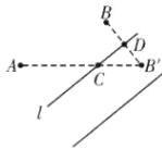 (2)连接$AB'$,交直线$l$于$C$. 则点$C$就是要求作的点.(即点$C$就是抽水站的位置)