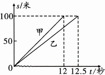 (3)甲的平均速度 = $\frac{100}{12} = \frac{25}{3}$(米/秒),乙的平均速度 = $\frac{100}{12.5} = 8$(米/秒).