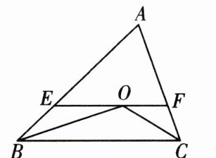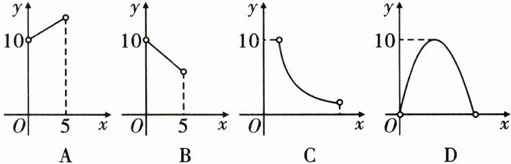 14. 如图,$\triangle ABC$的周长为10,$BC = x$,$\angle B和\angle C的平分线相交于点O$,过点$O作EF// BC交AB$,$AC于点E$,$F$,若设$\triangle AEF的周长为y$,则$y与x$的函数关系图象大致是(
