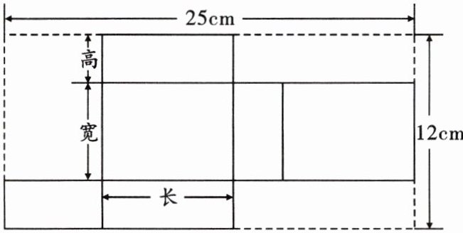 (1)设长方体的高为x cm,则长方形的宽为(12 - 2x)cm,根据题意可得: