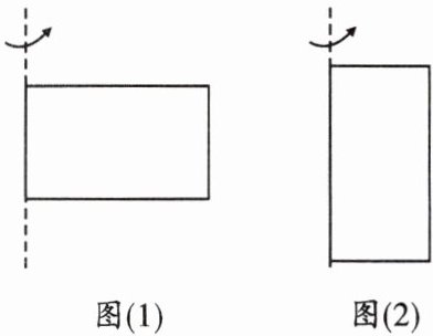 (1)如图(1)绕着它的宽所在的直线旋转一周,所得到的是什么样的几何体? 得到的几何体的体积是多少? ($ \pi $ 取 3.14)