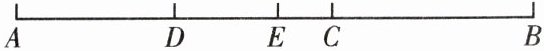 16. (6 分)如图,已知点 $ C $ 为 $ A B $ 上一点,$ A C = 15 \mathrm { cm } $,$ C B = \frac { 2 } { 3 } A C $,若 $ D $、$ E $ 分别为 $ A C $、$ A B $ 的中点,求 $ D E $ 的长.