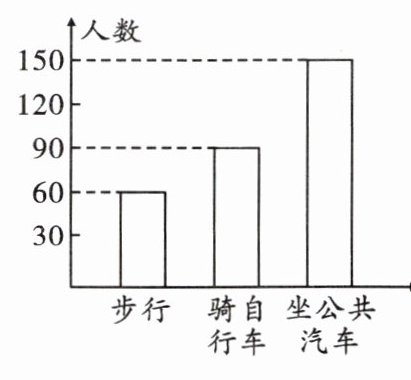 B.步行与骑自行车的人数和比坐公共汽车的人要少