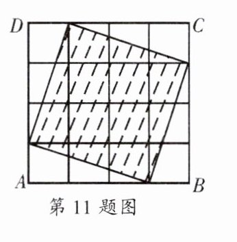 11. 如图,在一个有$4 × 4$个小正方形组成的正方形网格中,阴影部分面积与正方形ABCD面积的比是(