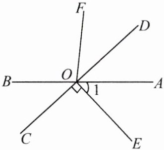 17. (7分)如图所示,直线AB,CD相交于点O,OD平分$∠AOF$,$OE \perp CD$于点O,$∠1 = 50^{\circ}$,求$∠COB与∠BOF$的度数。