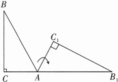 11. 如图,将一块含30°的直角三角板绕点A按顺时针方向旋转到$△AB_1C_1$的位置,使得点C、A、$B_1$在同一条直线上,那么旋转角等于(