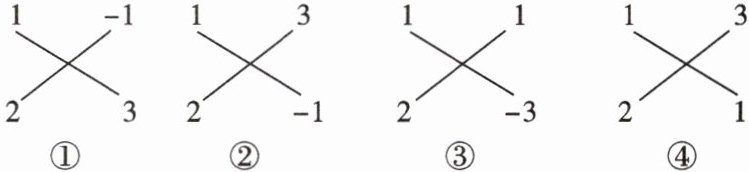 (3)发现第③个“交叉相乘之和”的结果$1×(-3)+2×1= -1$,等于一次项系数-1.