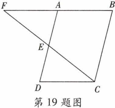 19. (7分)如图,E是□ABCD的边AD的中点,连接CE并延长,交BA的延长线于F,若CD= 6,求BF的长。