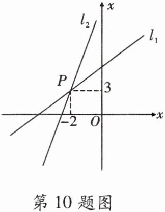 10. 如图,一次函数$y = k_{1}x + b_{1}的图象l_{1}与y = k_{2}x + b_{2}的图象l_{2}交于点P$,则方程组$\begin{cases}y = k_{1}x + b_{1}\\y = k_{2}x + b_{2}\end{cases} $的解是(