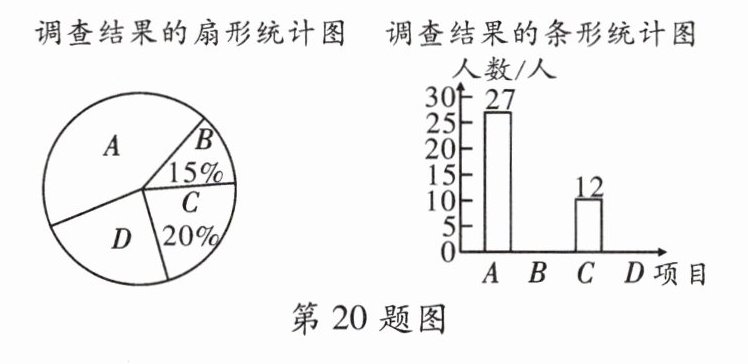 (1)如图,希望参加活动C占20%,希望参加活动B占15%,则被调查的总人数为______人,扇形统计图中,希望参加活动D所占圆心角为______度,根据题中信息补全条形统计图.