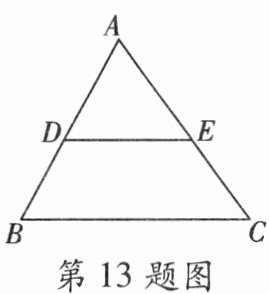 13. 如图,在$\triangle ABC$中,点$D在AB$上,点$E在AC$上,$DE// BC$.若$∠A= 62^{\circ}$,$∠AED= 54^{\circ}$,则$∠B$的大小为(