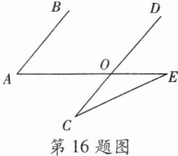 16. (6分)如图,$AE与CD交于点O$,$∠A= 50^{\circ}$,$OC= OE$,$∠C= 25^{\circ}$,求证:$AB// CD$.