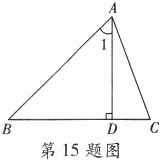 15. (6分)如图,$AD⊥BC$,$∠1= ∠B$,$∠C= 65^{\circ}$.求$∠BAC$的度数.
