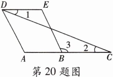 20. (10分)已知:如图,$AD// BE$,$∠1= ∠2$,求证:$∠A= ∠E$.