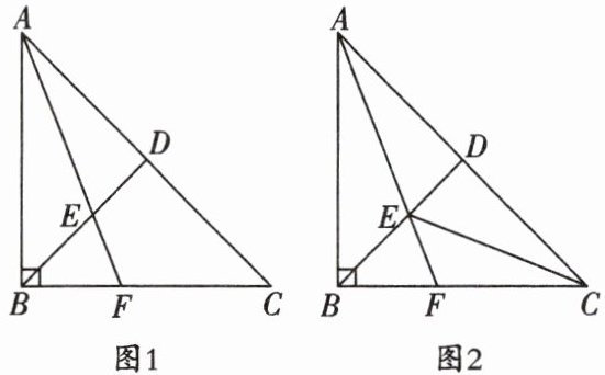 22.(9分)如图1,已知∠ABC= 90°,△ABC是等腰三角形,点D为斜边AC的中点,连接DB,过点A作∠BAC的平分线,分别与DB,BC相交于点E,F.